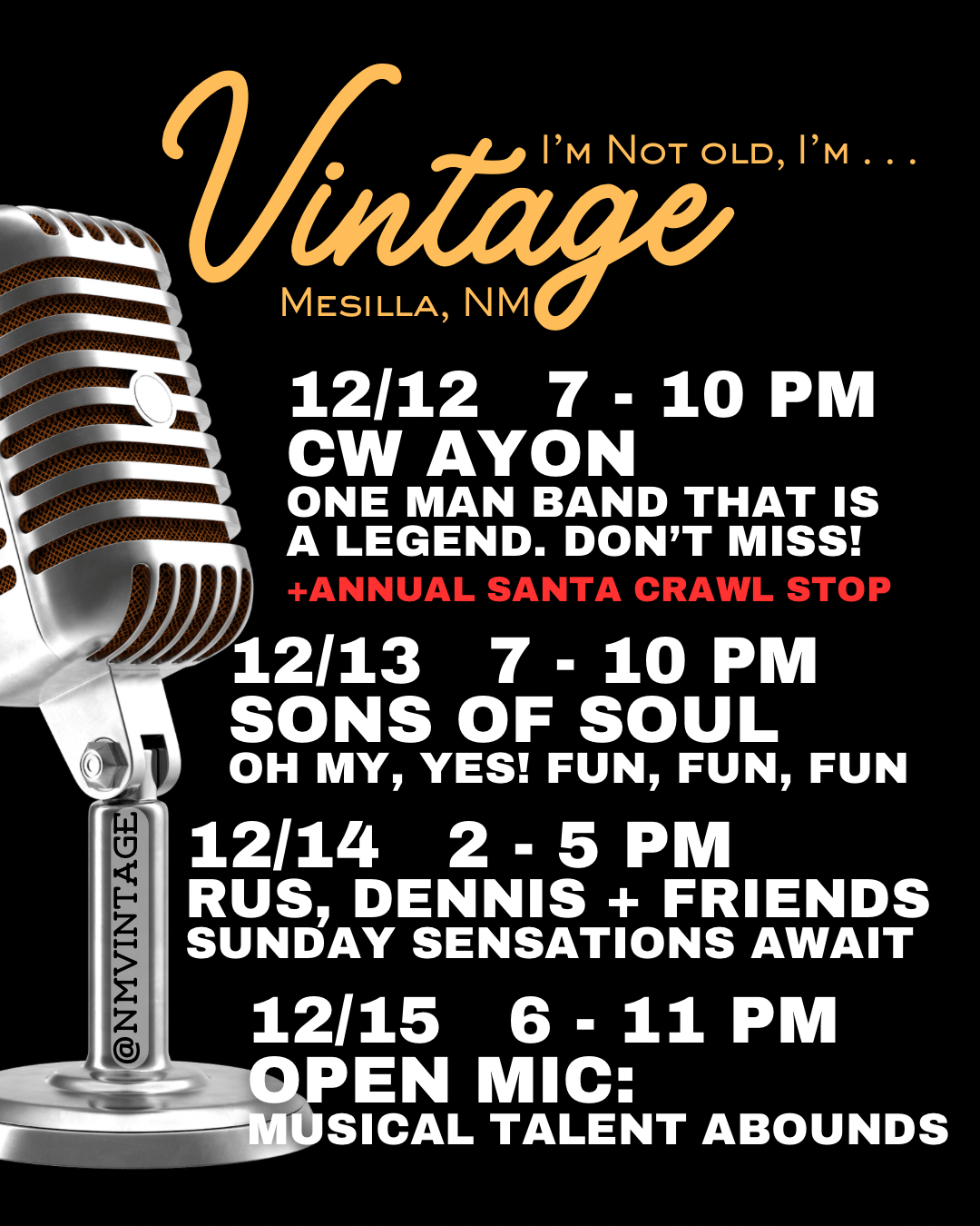 Howdy {{First Name|Las Cruces}}, if you’re looking for live music and a little holiday cheer in Las Cruces, you’re in the right place.