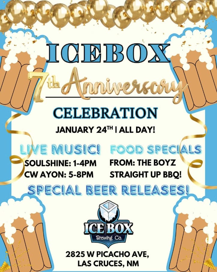 This Saturday January 24th Icebox Brewing is having am all day 7th Anniversary Blowout with two bands and special beer releases. Get ready to Party!